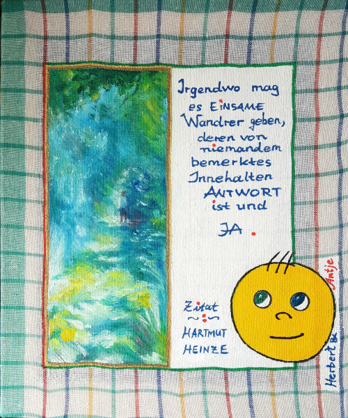 Spruch eines tiefsinnigen Freundes, Bild mit Wanderer impressionistisch inspiriert.